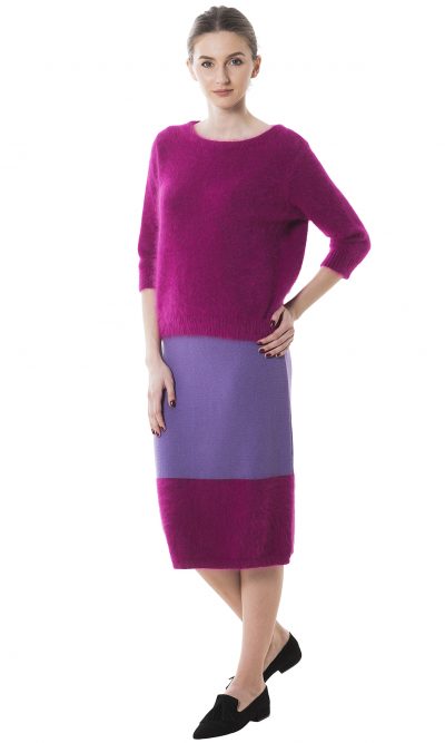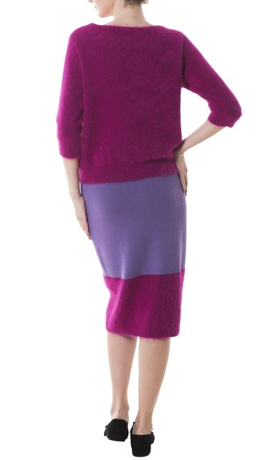 This skirt is naturally stretchy yet substantial enough to still be flattering. It’s made from contrasting vertical panels for a flared, swishy shape, mixing the soft blend of angora with spun cashmere. This season, the coolest way to style midi lengths is with slippers or ankle boots.