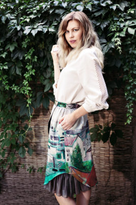 Here I am taking my fav piece: Argo Art Fame City skirt. First, few words about it, cause it has an interesting story! The challenging print is based on the painting of Alma Redlinger. Alma changed her studio and for one year she painted nothing. The first painting she came back with was of the view of the city from her new studio’s window. Thus came to life what is known as City from Above.